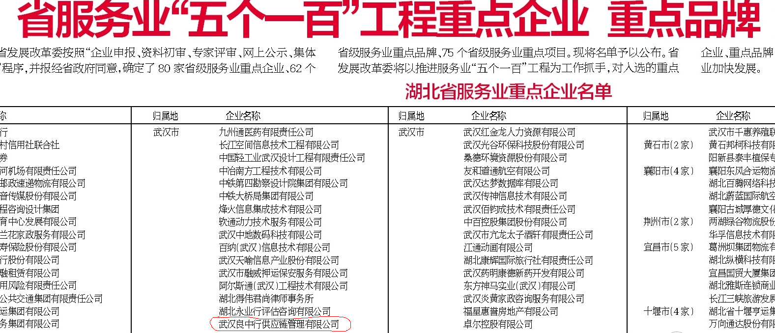 省服务业“五个一百”工程重点企业 武汉良中行榜上有名-武汉市农业龙头企业协会