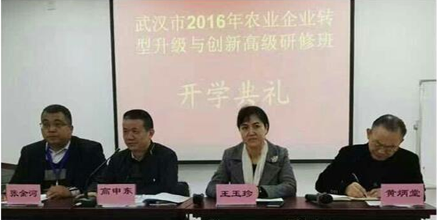 2016年11月21号上午8:30,武汉市农业企业转型升级与创新高级研修班在湖北省邮政培训中心顺利举办,武汉市农委副主任王玉珍、市农委产业化处处长高申东,武汉市龙头企业协会秘书长黄炳堂等出席了开班仪式。开班仪式由黄炳堂秘书长主持,王玉珍副主任和高申东处长先后作了热情洋溢的讲话。