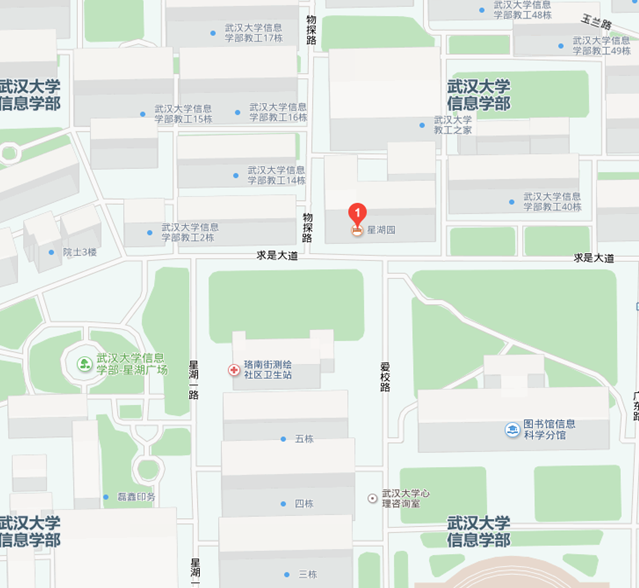 报到地点:武汉市洪山区珞瑜路广埠屯站,武汉大学信息学部星湖园(学术交流中心)一楼大厅。