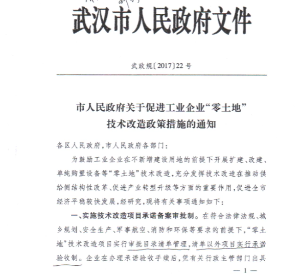 市府文件<<关于促进工业企业“零土地”技术改造政策措施的通知>>-武汉市农业龙头企业协会