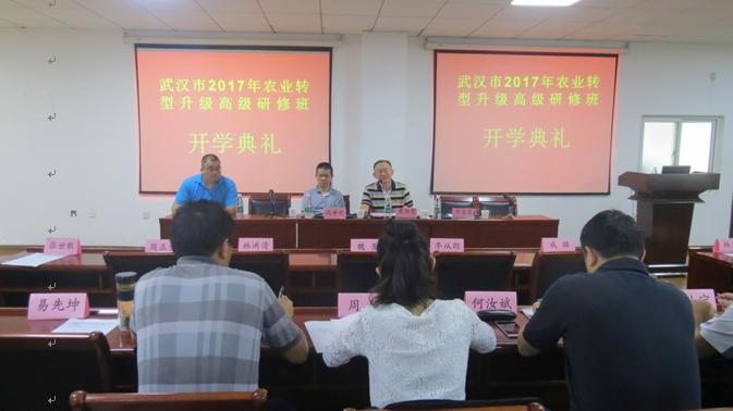2017年9月25日,武汉市2017年农业企业转型升级高级研修班在武汉大学顺利开班。武汉市农业委员会产业化处处长高申东、武汉市农业龙头企业协会副会长兼秘书长黄炳堂、《农业产业化通讯》主编张金河等出席了开班仪式。