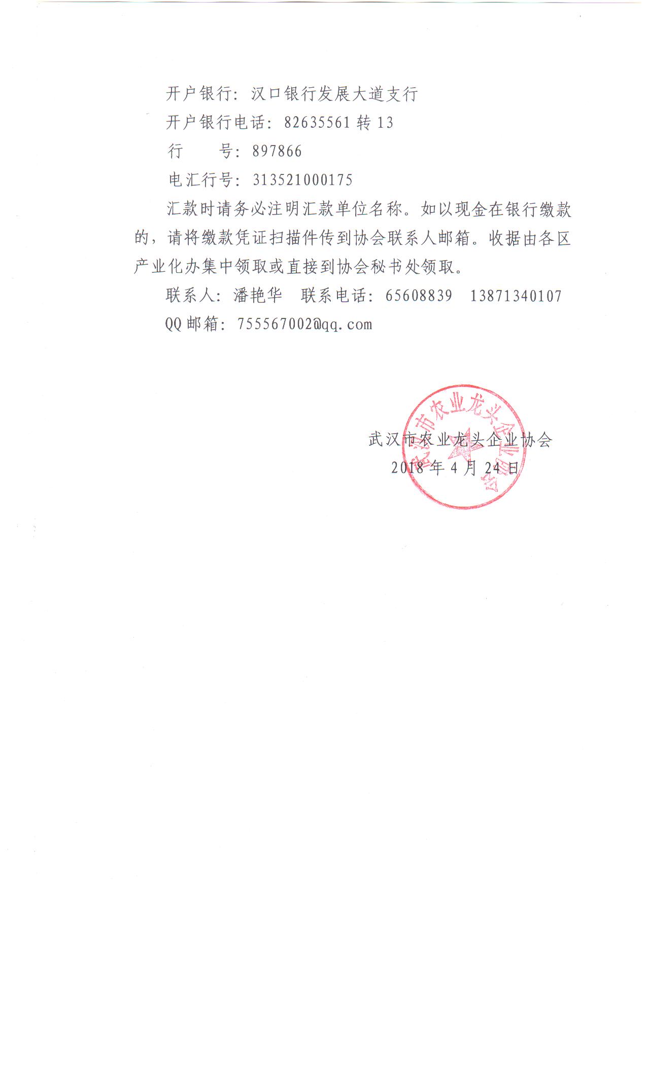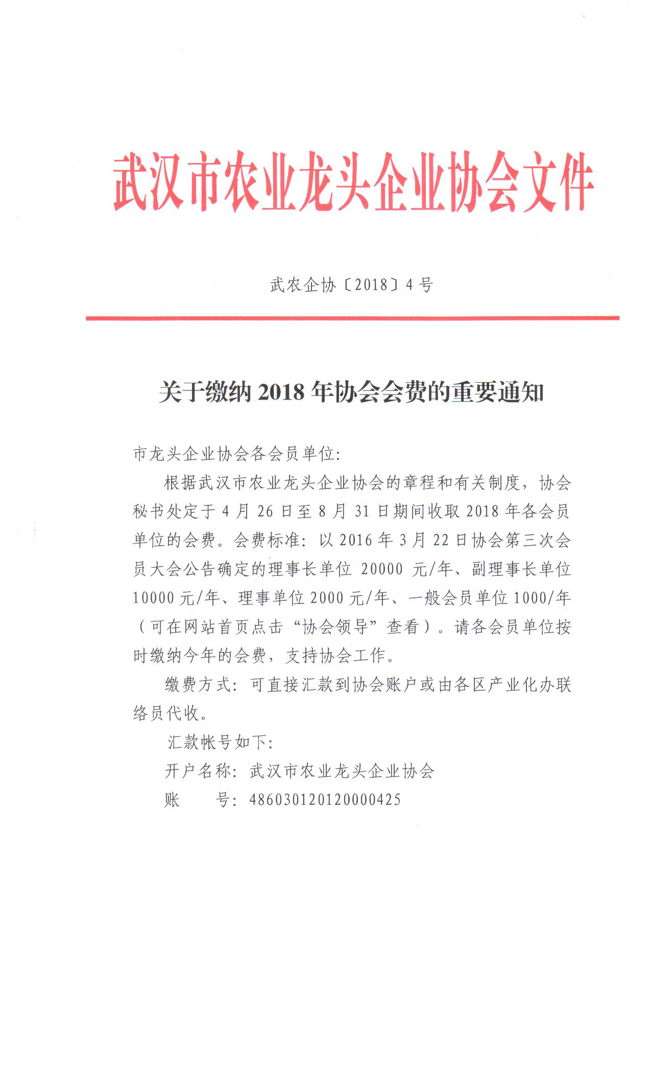 关于缴纳2018年协会会费的重要通知-武汉市农业龙头企业协会