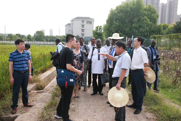 研修班考察了天门市仙粮机械有限公司和曙光农机专业合作社、中垦锦绣华农科技有限公司仙桃基地、龙蜂职业技能培训中心、仙桃市排湖泵站、湿地公园。在仙粮机械有限公司,重点考察了粮食烘干机、砻碾组合米机等设施设备的工艺流程及现场演示。在农机专业合作社,详细询问了农机作业、服务、培训和收费等情况。在中垦锦绣华农科技有限公司,参观了粮油新品种及种子加工流水线,实地查看了其1000余种水稻品种(系)的生长情况。在农民职业培训中心,宾主双方就教师资质、学员来源以及教学方式等方面的问题都进行了互动交流。