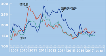 图1 2017/2018年粮油产品国际价格指数