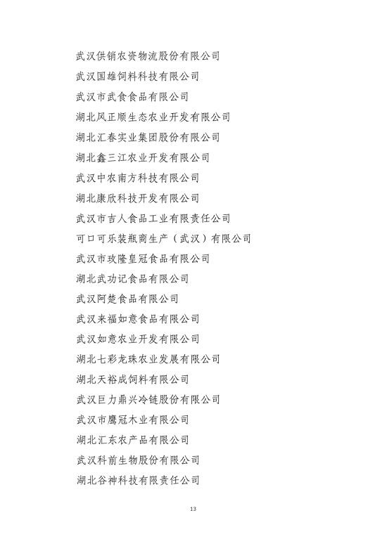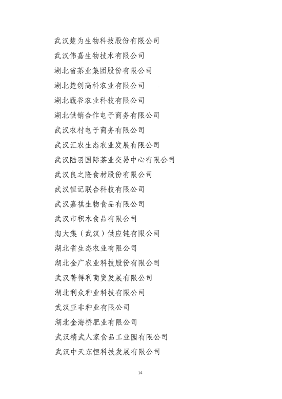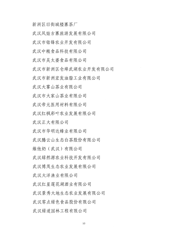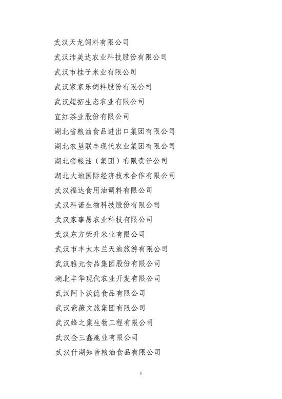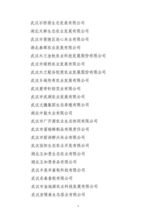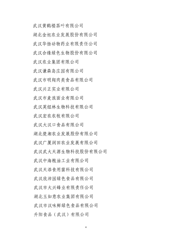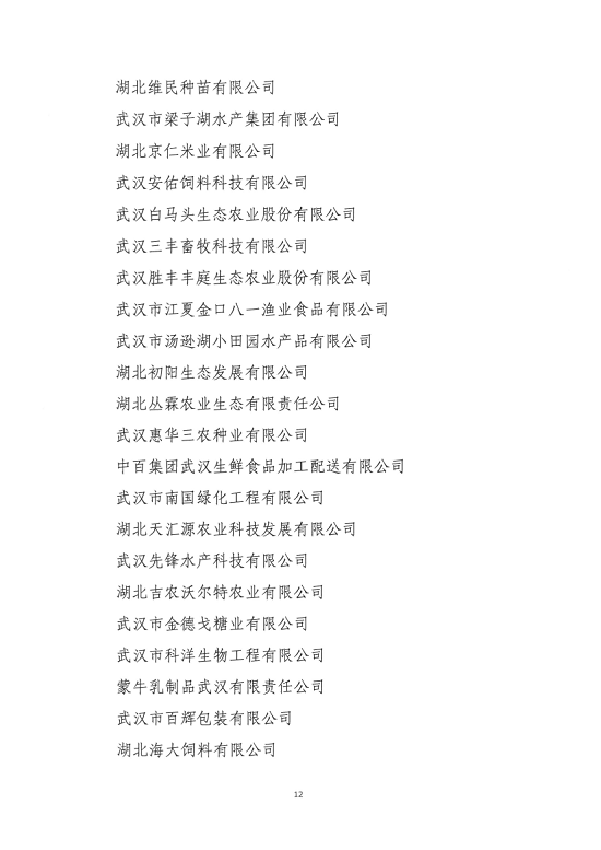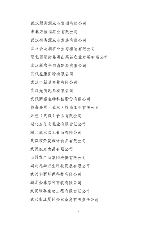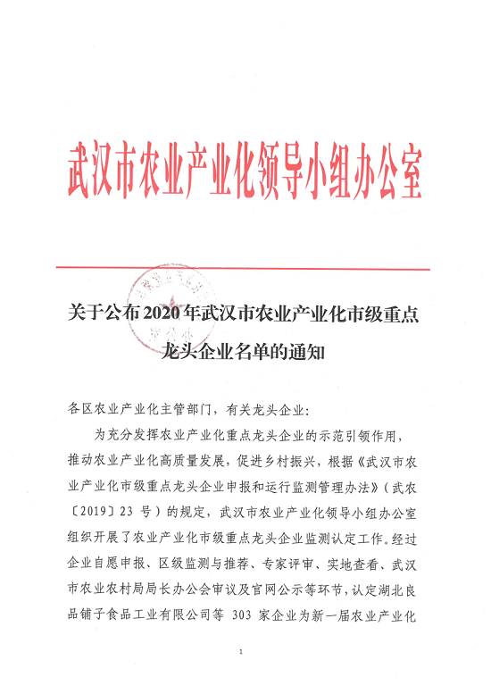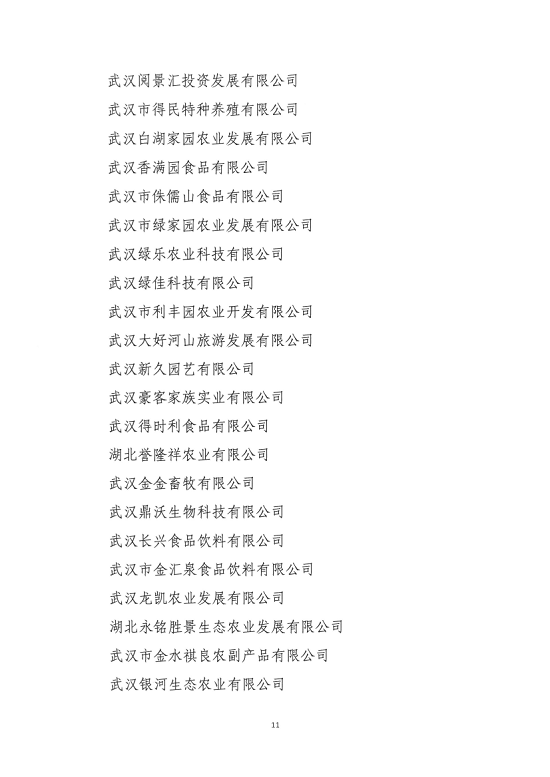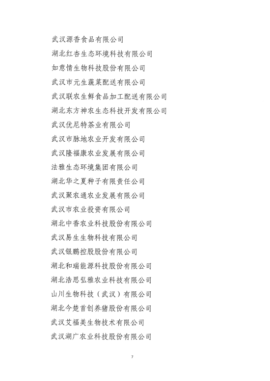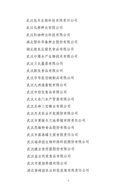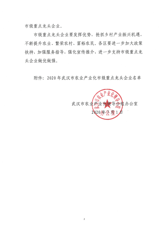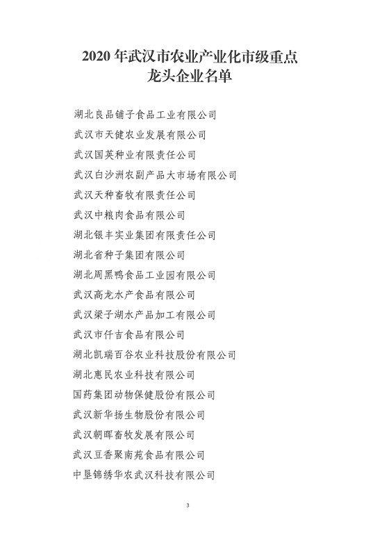 关于公布2020年武汉市农业产业化市级重点龙头企业名单的通知
