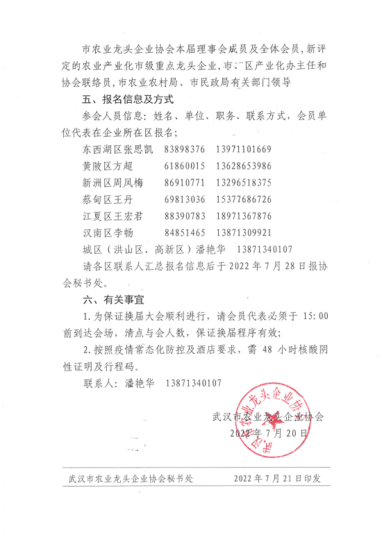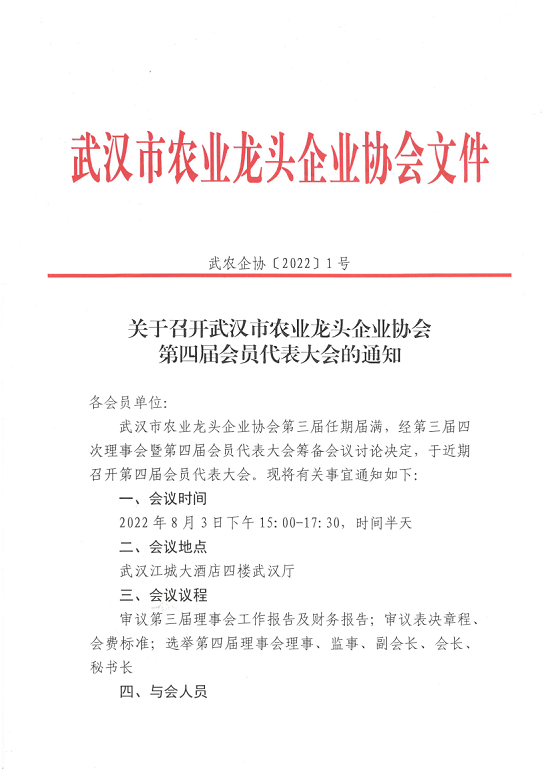 关于召开武汉市农业龙头企业协会第四届会员代表大会的通知-武汉市农业龙头企业协会