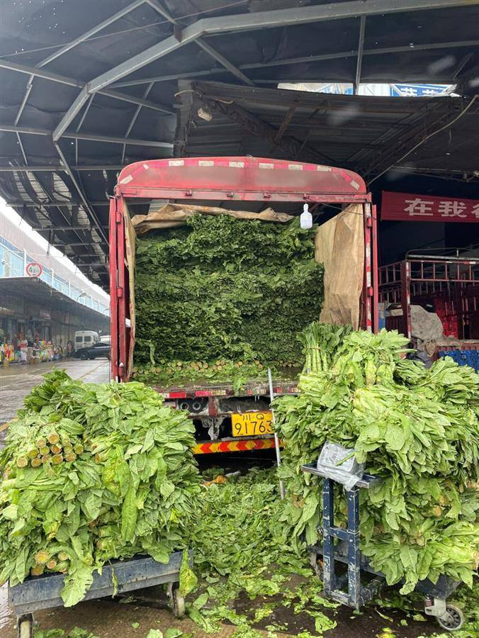 白沙洲市场蔬菜运输车辆正在卸货