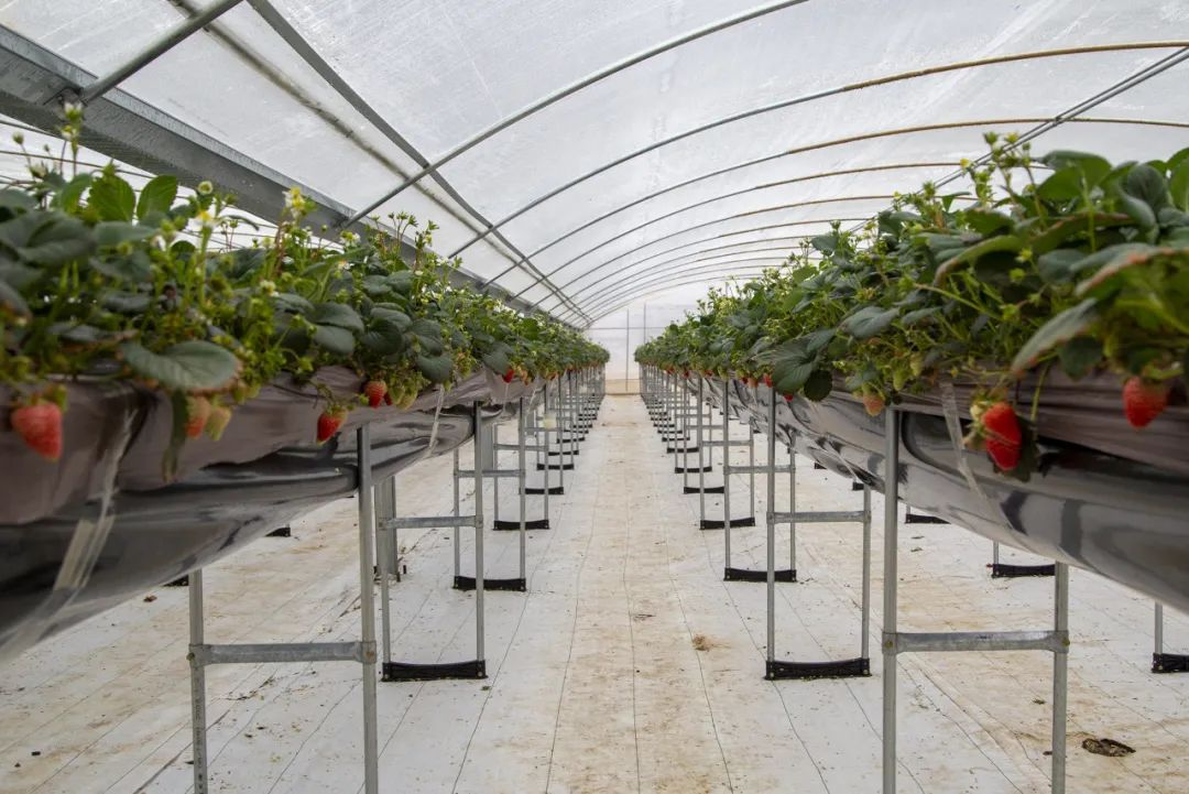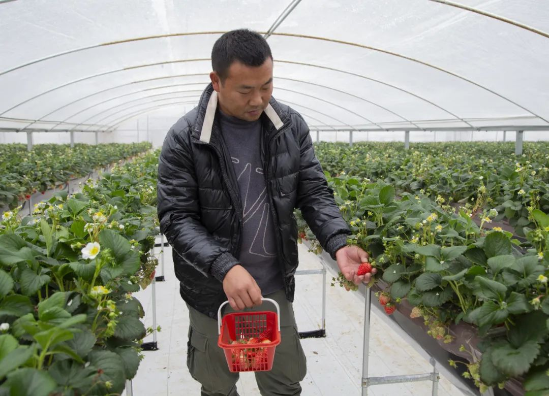与传统种植不同,“高架”草莓采用无土模式种植,能有效提高大棚的空间利用率和草莓产量,让种植更精细、更科学、更干净,也让草莓更加绿色和健康。