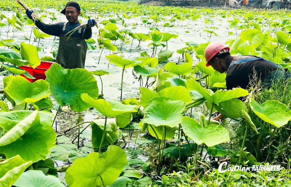 胡家桥介绍,目前莲藕基地采用的套养模式包括:龙虾与莲蓬、泥鳅与莲藕的共生,下一步计划引入鳝鱼与莲藕的混合套养,提高莲藕的亩产产值。