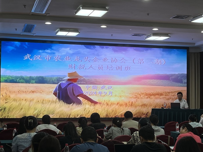 武汉市农业龙头企业协会主办的第二期财税人员培训班于2024年9月3日在武汉江城大酒店成功举办,来自协会各会员企业的高管及财税管理人员100余人参与了培训学习。