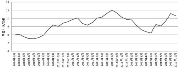 第一,从近年鸡蛋价格来看,波幅大、变化快等特点一直是市场关注的焦点。从农业部监测的鸡蛋价格月度数据可以看出我国鸡蛋价格波动的长期趋势线。从鸡蛋价格的周期波动曲线看,从2001年1月至2011年12月的120个月中,国内鸡蛋价格累计发生7次较为显著的波动,波动周期基本稳定在18个月左右,与蛋鸡饲养周期基本吻合。与此同时还可以发现,近10年内,季节性周期波动的幅度呈现逐渐扩大的趋势。